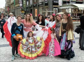 Romští umělci v pestrých kostýmech se na svou každoroční cestu středem hlavního města vydali v poledne z Václavského náměstí. Přes Příkopy se dostali k Ovocnému trhu a skončili na Staroměstském náměstí. Tady jednotlivé soubory předváděly hloučkům turistů i domácím kolemjdoucím své umění.