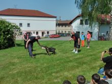 Spousta dětí ze školky a školy z Kladské ZŠ se setkalo s policejním psovodem z Lanškrouna . Ten přijal pozvání občanského sdružení dětí a mládeže Začít spolu.Štěňata netrpělivě tahají za vodítko, protože mají jedinou touhu – chytit lumpa. Na povel cvičitele provádí ukázkové zadržení.Zuby se zakousnou do figuranta a cloumají s ním tak dlouho, dokud nepadne k zemi.a od svého pána za odměnu dostane každé štěňátko pamlsek. Své ukázky poslušnosti, vyhledávání a zadržení pachatelů zvládli výborně . Umí aportovat, stopovat, zadržet pachatele. Jejich výcvik trvá dlouho, ale jsou dokonalými pomocníky.